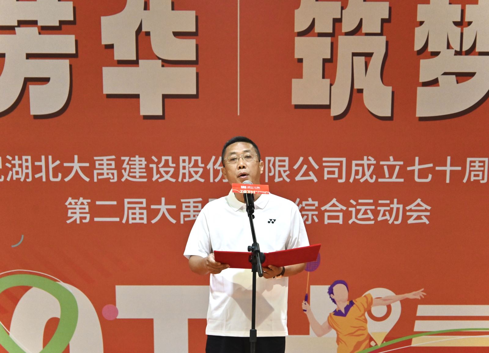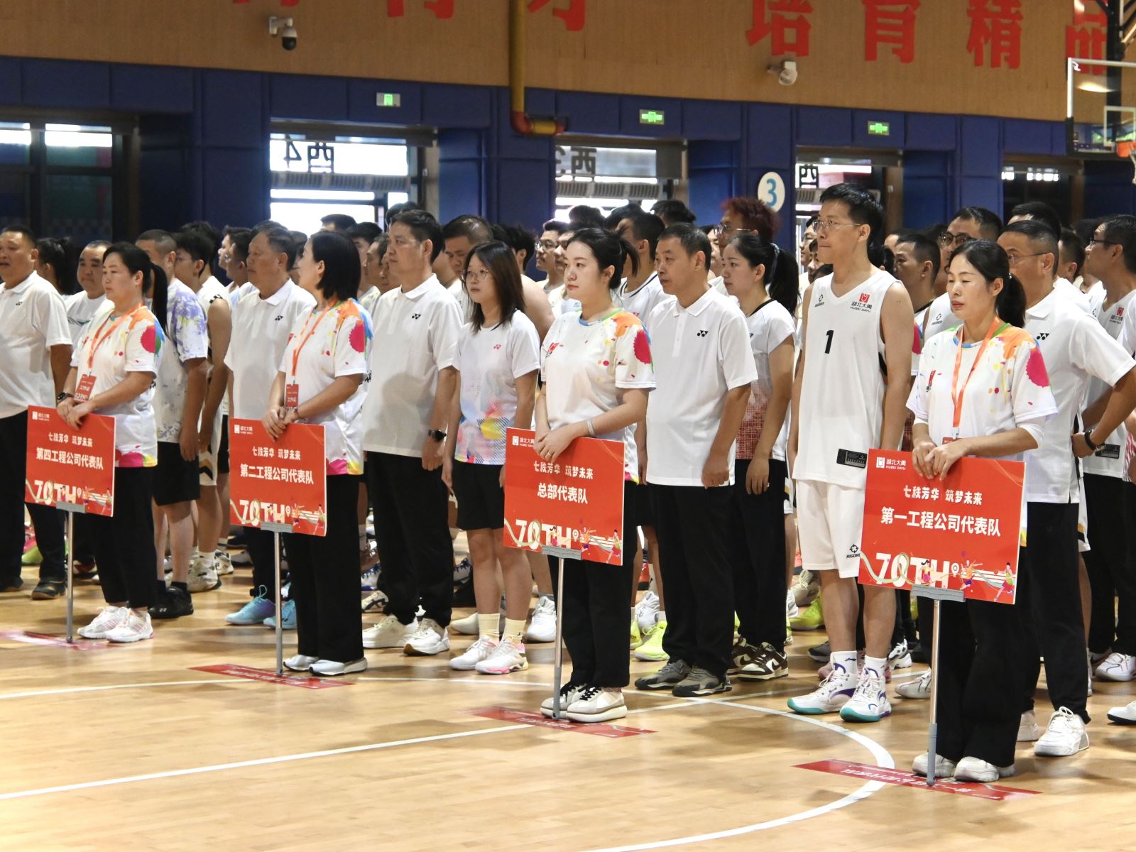 ​10月14日上午,湖北大禹建设股份有限公司“七秩芳华 筑梦未来——热烈庆祝公司成立七十周年暨第二届大禹股份杯”综合运动会在武汉市洪山体育馆隆重拉开帷幕。公司高管、特邀嘉宾、中层管理人员、专家顾问、参赛选手、裁判员齐聚现场,带着昂扬的斗志与饱满的热情,共同迎接这场属于全体大禹人的体育盛会。​