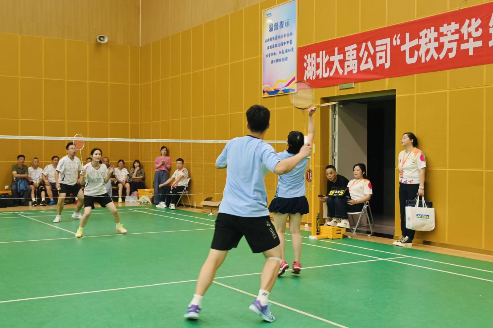 开幕式结束后,篮球赛与团体羽毛球比赛率先开战。赛场上,运动员们迅速进入状态,传球、投篮、扣杀、防守…… 每一个动作都充满力量与激情;场下,啦啦队员们挥舞着彩旗,呐喊助威声不绝于耳,整个洪山体育馆成为了一片欢乐的运动海洋。​